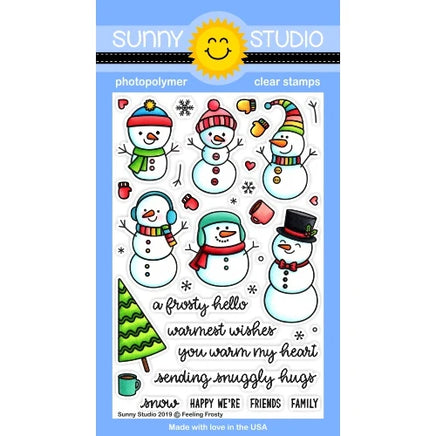 It's hard to pick a favorite from our new Feeling Frosty Stamps. This set comes with 6 snowmen friends each with their own distinct personality, a stylized Christmas tree, two mugs, two sets of mittens, a flurry of snowflakes and six punny winter sentiments.