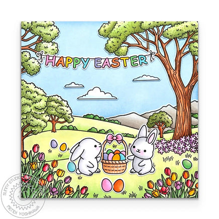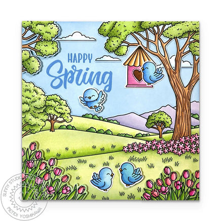 Step into a springtime dream with our Majestic Meadow Stamps! This 6x6 stamp set has everything you need to create a scenic backdrop featuring a grand tree, blooming tulips, fluffy clouds, and cheerful birds soaring through the sky. The square design allows you the flexibility to shift the perspective for different card orientations, and the serene scene is so detailed that you'll half expect a gentle breeze to rustle through your craft room.