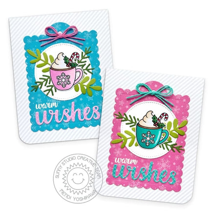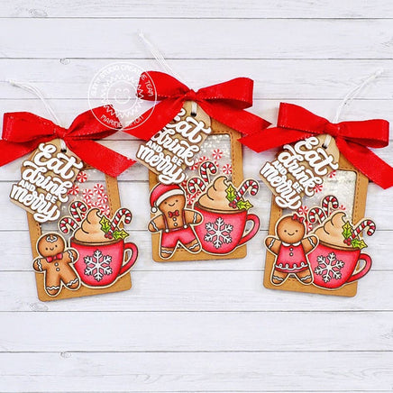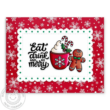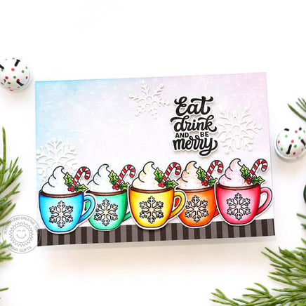 Our Merry Mocha stamps are the perfect blend of festive fun and creative flair! Infuse your projects with holiday cheer using a cozy snowflake mug adorned with a whimsical candy cane. This set also features a jolly and bold script greeting, "Eat, Drink, and Be Merry," along with two mini snowflakes. Cheers to crafting joy!