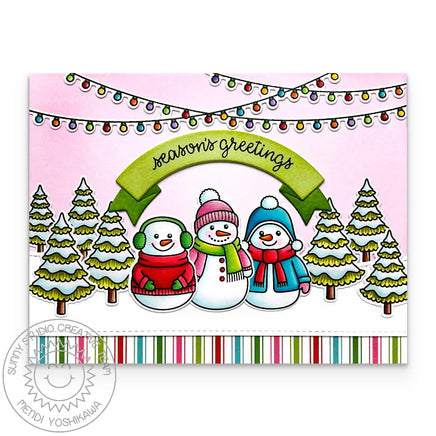 Creating winter scenes will be a snap with our new Scenic Route stamps! Comes with 4 fun holiday borders, one sentiment, a miniature individual tree, a flurry of snowflakes and two mini hearts. Get extra mileage from the set by coloring the snow to look like grass for everyday themes.