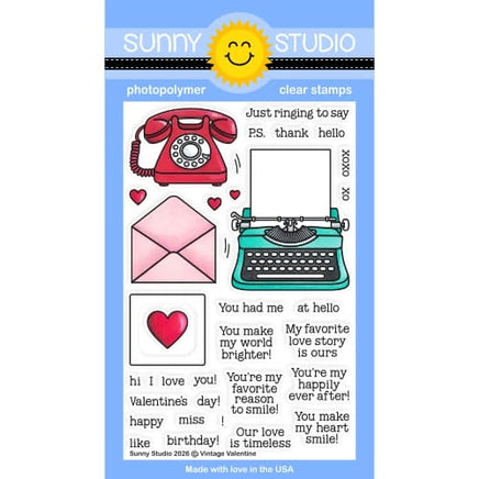 Send a little old-fashioned love with our Vintage Valentine Stamps! This charming set features a retro typewriter, classic telephone, envelope, and letter—plus over a dozen typed greetings you can stamp right onto your notes. Perfect for timeless love notes or everyday cards, the vintage way!