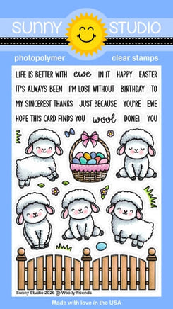 Have a “woolly” good time crafting for spring and Easter! The Woolly Friends Stamps set includes five adorable fluffy sheep, an Easter basket, a picket fence border, and nine pun-packed sentiments—perfect for cards that are un-baa-lievably cute!