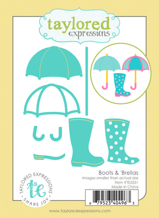 Create delightful rainy day designs with the Boots & 'Brellas Dies! This set includes all the pieces to make an adorable rain boot and umbrella duo, perfect for tucking in flowers from Garden Variety 1 & 2 Dies (both sold separately) or making baby shower, wedding shower, and seasonal projects. Includes 8 dies. The umbrella measures 2 7/8 x 1 3/4 in. and the boot measures 1 3/4 x 2 1/2 in.
