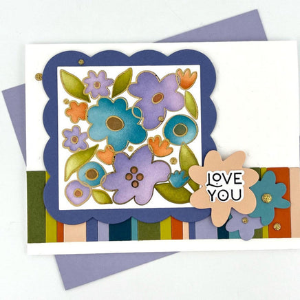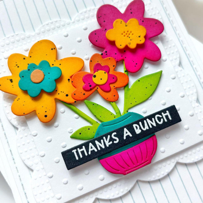 Create a bouquet of blooms with the Petal Party Dies! Designed to pair with the Petal Party Layering Stencil (sold separately), these dies cut flowers in the same whimsical style as the stencils. Layer blossoms, centers, and stems to build dimensional florals that pair perfectly with your stenciled designs.