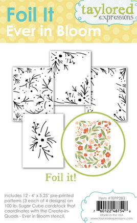 Add shimmery accents to the cards you create with our Create in Quads - Ever in Bloom by using our Foil It - Ever in Bloom panels. Simply top with the foil of your choice and run it through your foiling machine. Voila - a beautiful pattern with shiny stems and flower centers. After foiling, use the layering stencil to add color to the flowers & leaves!