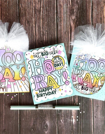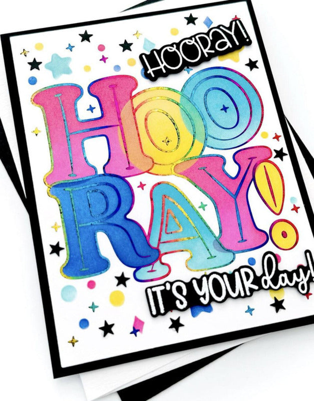 Dazzle your card recipients with Foil It - Hooray Palette, designed to coordinate with Hooray Palette Layering Stencil (sold separately). Simply choose your favorite TE Fun Foil, send it through your heat source, and blend the "hooray" with the coordinating stencils for color and flair! The panels are toner printed for easy foiling, making the sentiment pop for an extra dose of sparkle in your creations!