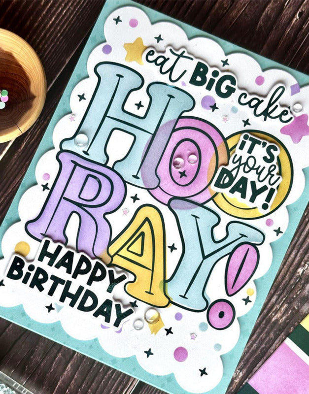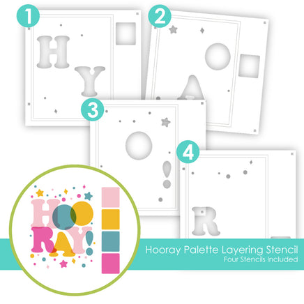 Make the most of your crafty time with the Hooray Palette Stencil & Die Combo! This clever set lets you record color combos and create a beautiful project all at once. Simply blend through the stencils to create a multi-colored bubbly "Hooray" sentiment, while blending in the squares along the side capture your four-color combo layer by layer. Use TE Premium Ink to blend your color combo, then die cut the swatch strip with the Palette Swatch Die (sold separately) to save for future reference. You can then trim and use the blended sentiment for a crafty project. It's a creative way to swatch color palettes and craft at the same time!