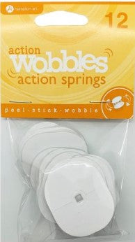 Action Wobble-Mini Wobble Spring. These plastic springs make it easy to create fun wobbly projects! This 4-1/4x4-1/4 inch package contains twelve self-adhesive mini wobble springs. Each wobble measures approximately 0.75 x 0.625 inches. Imported.
