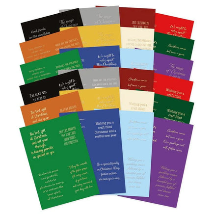 They have you covered for all those special seasonal wishes with 24 sheets containing a total of 96 perfectly worded verses in gold or silver foil. There are 24 different A7-sized verses overall throughout that you can easily trim and incorporate into your designs, with each coming in multiples of 4 different Christmas colour variants. In fact, throughout the pack you’ll find a rainbow of Christmas colours with 12 stunning seasonal colours included. The verses cover Christmas wishes, friendship, religion, love, new year, family, across the miles and so much more with heartfelt wording that would look stunning both on the front of a card or adorning the inside.