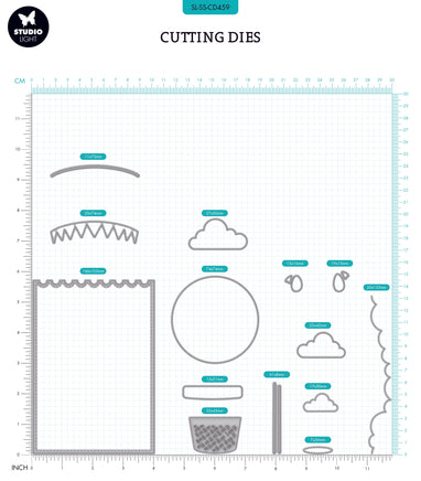 This cutting die set is perfect for scene building. The set includes everything you need to create a hot air balloon plus extra elements to finish off your project. This set will make a great addition to cards, scrapbook layouts and journal pages. 14 pcs.
