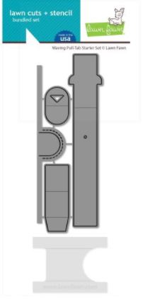 This bundle contains most of the pieces needed to make a “waving” pull-tab. The included stencil is a useful guide to line up the stitched notch and slot piece (slot piece included in each compatible set like Snow Much Fun and Snow Much Fun Lawn Cuts).