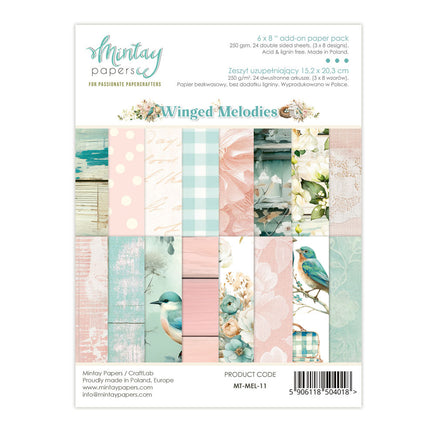 WINGED MELODIES - Mintay's 100th collection! Filled with dreamy charm, delicate birds, and beautiful flowers. It subtly nods to one of our earliest collections from seven years ago--Birdsong. While our style has evolved over the years, becoming more intricate and detailed, it's always heartwarming to revisit and reimagine something beloved.This collection embraces soft shades of turquoise and powder pink, evoking a sense of lightness and the fresh, breezy atmosphere of spring and summer. With its universal appeal, Winged Melodies is perfect for any project, whether anyone crafting for the season or creating timeless keepsakes.